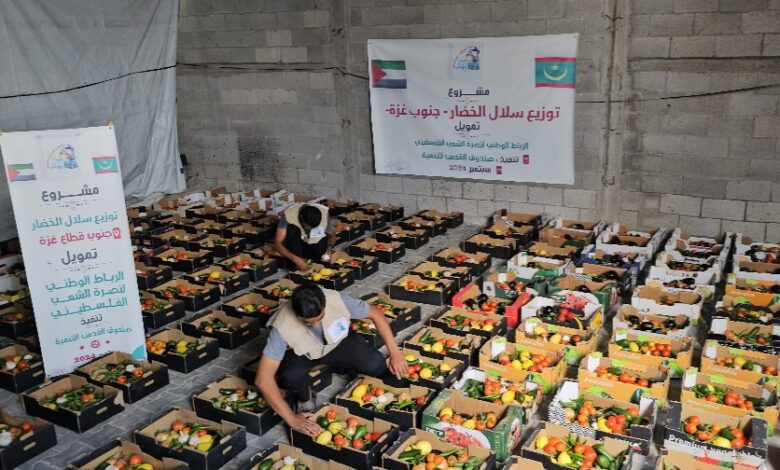 أعلن الرباط الوطني لنصرة الشعب الفلسطيني عن إطلاق مشروع لتوزيع سلال الخضروات على النازحين من جنوب قطاع غزة، وذلك ضمن مساعيه الإغاثية لدعم المتضررين من الحرب على القطاع.